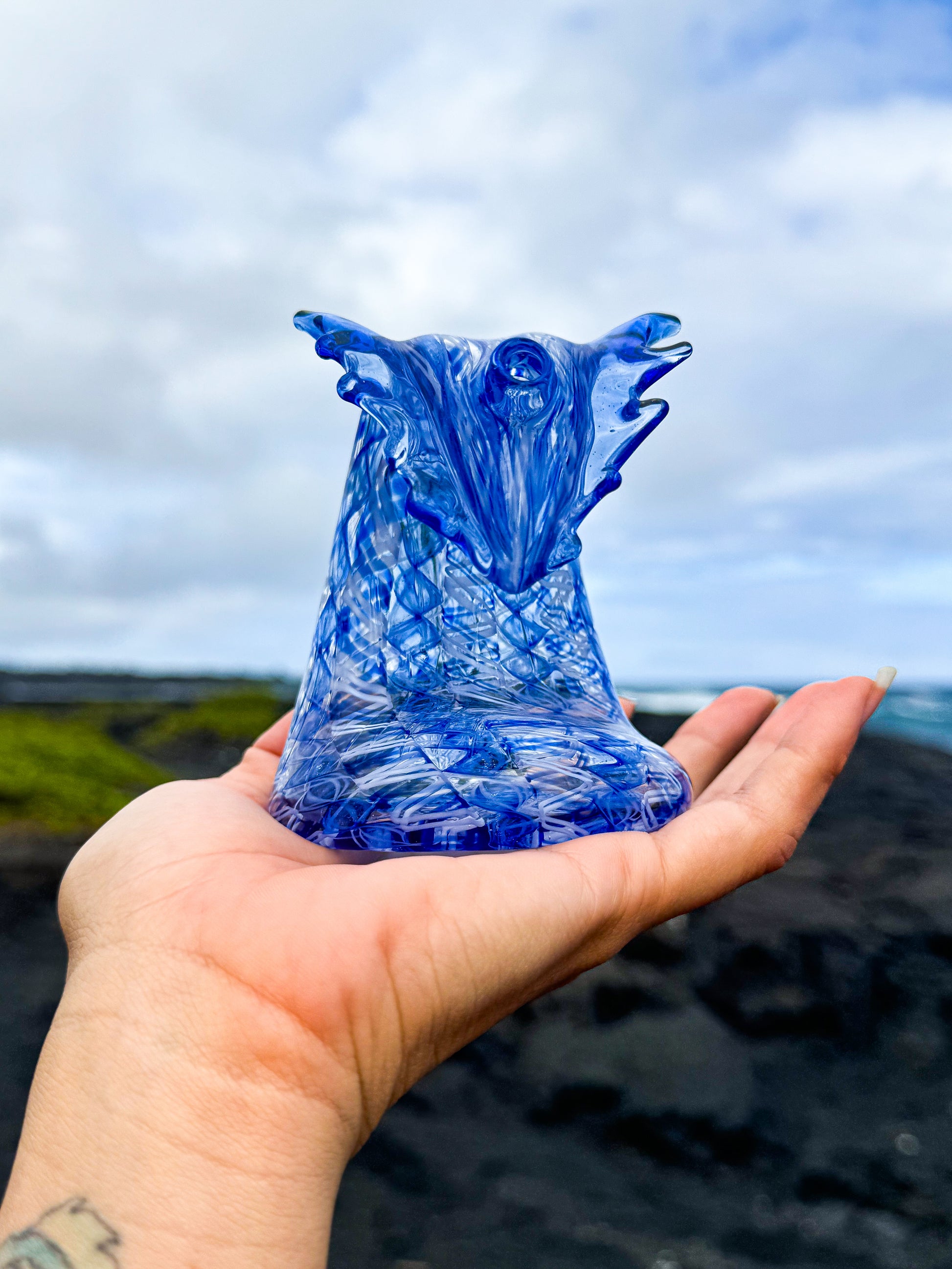Gorgeous blue and white latticino cane by @noscoglass shaped into,this elegant wave. Sure to get a second glance!!!!
