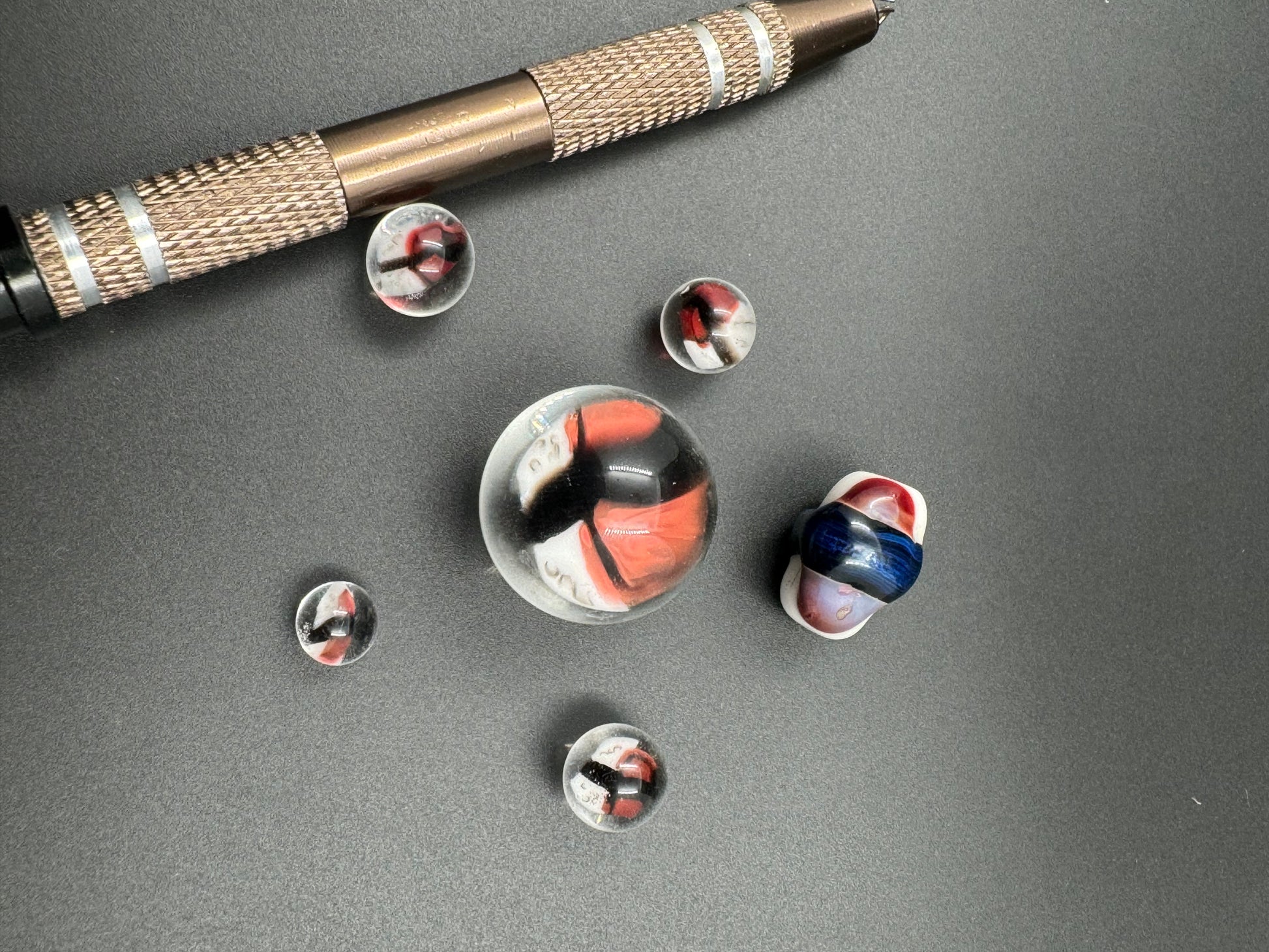 1 top marble 1 valve marble and 2 terp pearls all matching spam musubi milli sets